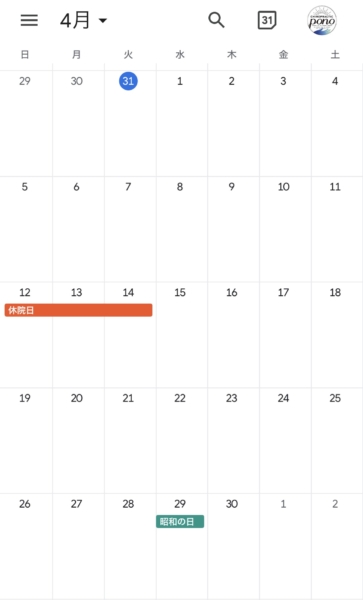 昨日から新年度がスタートしました。4月の休院日はカレンダーの通りです。